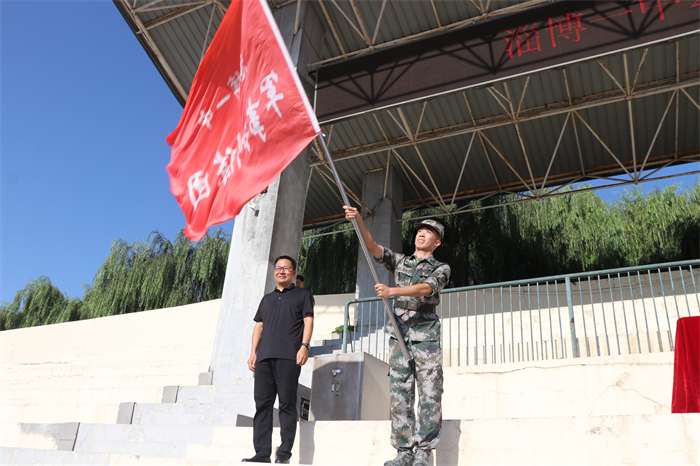 刘加成校长为教官代表授旗,正式拉开军事训练序幕。在接下来的一周中,2023级全体学生将发扬不怕苦,不怕累的精神,认真、圆满完成此次军训任务。
