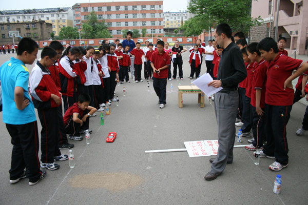 我校举行“校园F1”大赛 日期:2009-05-15 来源:本站 X 5月14日,我校成功举行科技节系列活动之一----“遥控车障碍赛”。这项赛事已举办多届,深受同学们的欢迎,被同学们称为“校园F1大赛”。同学们报名踊跃,摩拳擦掌,准备在赛场上一展风采。各式各样的赛车在主席台上等待检阅,你方赛罢我登场,比赛开始,在同学们的加油助威声中,一辆辆赛车如离弦之箭,“钻地洞”、“急拐弯”、“过沙滩”、“撞胜利瓶”,最后到达胜利的终点。 比赛的举行丰富了同学们的课余生活。外语学校积极落实素质教育的各项要求,精心设计开展形式多样的学生活动,以活动为载体,使学生在活动中锻炼,在活动中感悟,努力把学校打造成一个幸福的共同体。