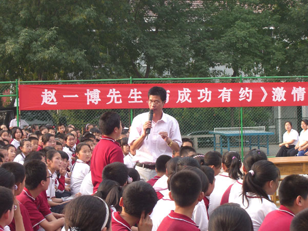 2009年6月16日下午,我校邀请全国著名心理专家、潜能激发大师、演讲大师赵一博先生,为我校高一、初中3000余名师生作了《与成功有约》激励教育演讲报告。