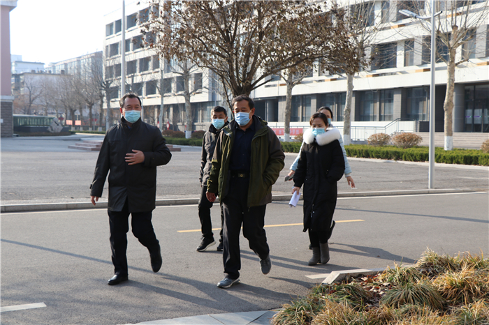 3月2日下午,市教育局人事科科长蒲磊、宣传科科长张新明在博山区教体局有关领导的陪同下到我校督查校园春季开学工作,学校党委副书记李诚及相关处室负责人参与活动。