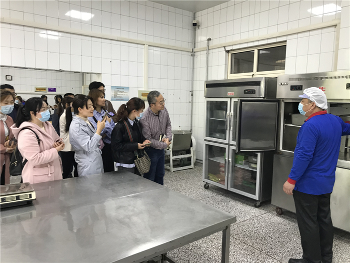在餐厅里,家长们实地查看了厨房环境卫生、餐具消毒、食材存贮、菜品制作、餐具清洗等情况,与餐厅负责人对食品进货渠道、食物留样、资料台账等进行了交流,随后在就餐时间和孩子共餐,亲身体验学校饭菜的质量。