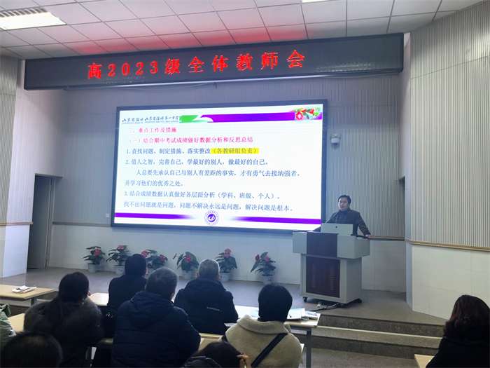 为总结前半学期教学情况,有效调整教学策略,进一步提升育人质量,12月4日下午,我校2023级在课例研究室召开了全体教师会。