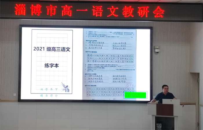 专题发言阶段,淄博五中邵燕老师、淄博六中王芹老师、我校高荣欢老师分别就“高中文言文学习的策略和方法”、“重视基础扎牢根基,活动引领提升素养”及“2024年高考作文阅卷评分细则与备考建议”作专题报告,为全市语文学科高一阶段的文言文学习、基础落实、素养培养和作文指导提供了切实可行的思路和做法。