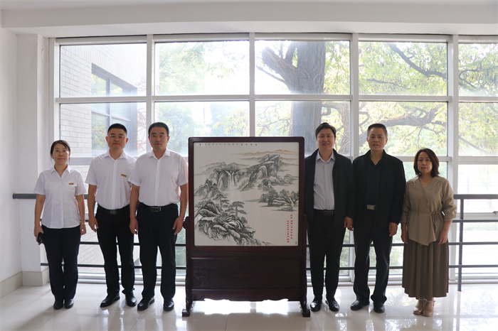 齐商银行博山支行向我校捐赠山水画刻瓷屏风