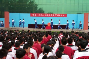 9月12日上午,我校在校本部前操场隆重举行第十四次"奉献一片爱心,救助特困学子"捐款仪式,"爱的奉献"再掀高潮。