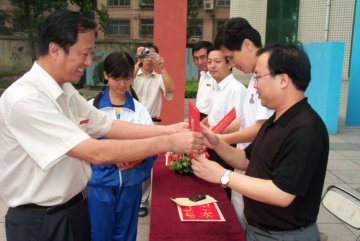 校长陈贞凯为捐款来宾颁发纪念证书 |