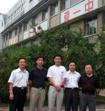 参加捐款仪式的高八二级部分校友(从右至左):王成、李厚东、曲东升、王立民、郑俊峰 |