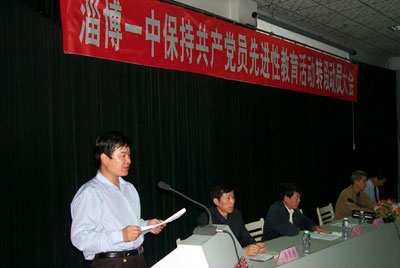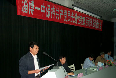 市教育局保持共产党员先进性教育活动领导小组副组长、党委委员、市教育工会主席赵泮利在讲话中肯定了我校先进性教育活动第一阶段的工作,并代表市教育局共产党员先进性教育活动督导组对我校搞好先进性教育活动第二阶段工作提出了指导意见,他强调指出,走群众路线,开展批评与自我批评,这是我党的优良传统,是全面推进保持共产党员先进性教育活动的有效措施,在整个教育活动中是承上启下的重要一环,学校党委、全体党员要着眼于改革发展全局,突出“三个代表”重要思想,突出科学发展观,突出取得实效;要倾听群众呼声,广泛征求意见,解决与群众切身利益密切相关的问题;要边议边改,在工作细节上下功夫,评议要具体,措施要得力,效果要显著。