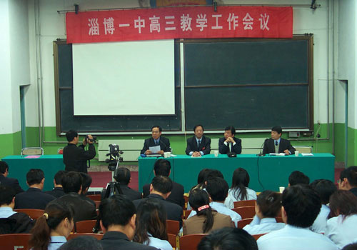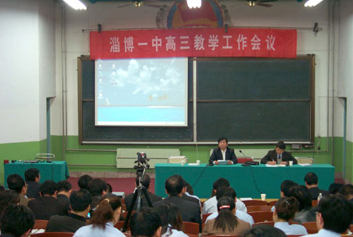 苏明光主任在会上发表热情洋溢的讲话,他首先代表市教研室对我校夺得2005年高考全市第一和2004-2005学年度教育教学评估全市第一表示热烈祝贺,对淄博一中领导班子和全体师生的辛勤付出致以真诚感谢。他指出,当前全社会对教育给予了空前的关注,升学竞争日趋激烈,淄博一中作为全市高中教育的排头兵,要创新备考,乘势而上,多出人才,多出经验,为全市教育的腾飞再做新贡献。为达成这一目标,他强调,一是要坚持“以人为本”的办学思想不动摇,二是要坚持“夯实双基、滚动发展”的备考策略不动摇,三是要坚持课堂教学创新不动摇,四是要坚持教学常规落实不动摇,五是要坚持规范训练不动摇。