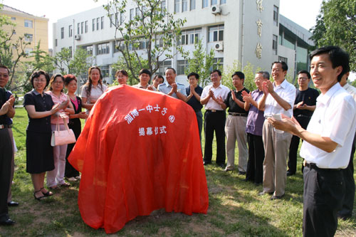 6月16日,高1980级文科班校友代表一行14人回访母校,淄博一中“士子园”揭幕仪式隆重举行。当年的语文老师、老校长杨运德,学校领导陈贞凯、张业玉、胡波、李诚等出席,工会主席孙希刚主持仪式。