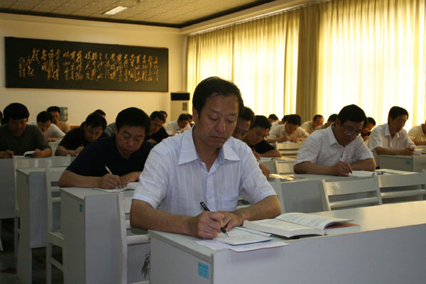 为进一步加强学校干部和教育教学工作骨干队伍的建设,提高整体思想素质和工作能力,确保我校教育教学质量的稳步提高,巩固和强化我校在全市的优势地位,开创工作新局面,7月25日—28日,我校在学术报告厅隆重举行2006年干部暑期读书会。张业玉副校长作动员讲话,陈贞凯校长作总结报告,高雪长副校长主持会议,学校中层以上干部、教研室正、副主任50余人参加。本届读书会的主题为:应对挑战,强化使命。