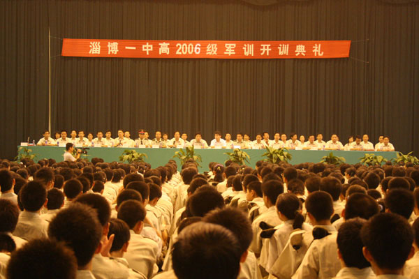 牛瑞洲副局长代表市教育局向博山区政府、人武部多年来对教育事业的关心和支持表示衷心感谢,对淄博一中夺得2006年高考全市第一的优异成绩表示热烈祝贺,他勉励同学们,站在新的起点上,要严格要求自己,虚心向教官学习,增强集体主义、组织纪律观念,磨练坚强意志,培养吃苦耐劳精神,把军人的优良作风落实在今后的学习和生活中,为开创自己美好的未来奠定坚实的基础。