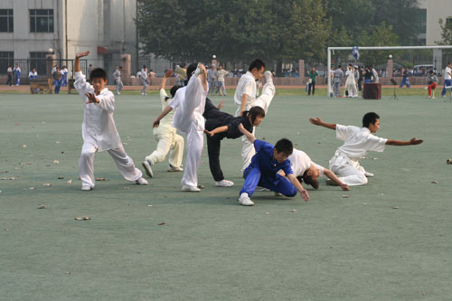 开幕式上,博山区管弦乐队与学校合唱团共同为师生演出了《长征组歌》,以纪念红军长征胜利70周年。同时,学校武术队、健美操队也进行了精彩表演。