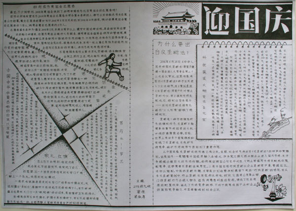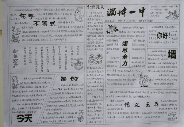 “热爱祖国、珍爱一中”手抄报、绘画比赛在同学们的积极参与下,业已圆满结束。比赛过程中,参赛同学牺牲自己的休息时间,用他们隽永的字体、精湛的画工、精美的设计,抒发了他们的爱国爱校之情,展示了一中学生的风采。