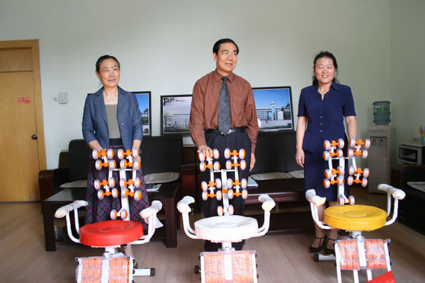 仪式上,陈贞凯校长向郇宜明董事长颁发了荣誉证书,郇宜明董事长与陈贞凯校长共同为三位名师颁发了健身按摩椅。