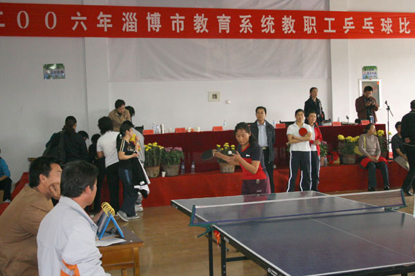 全市教育系统乒乓球比赛 日期:2006-10-31 来源:本站 X 全市教育系统教职工乒乓球比赛于10月26日、27日在淄川二中举行,我校代表队取得优异成绩:常承秀、马伟光在男子双打比赛中荣获亚军;我校代表队荣获男子团体第三名;女子团体第五名。