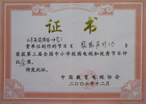 《感恩在行动》荣获第三届全国中小学优秀校园电视和优秀节目评比金奖