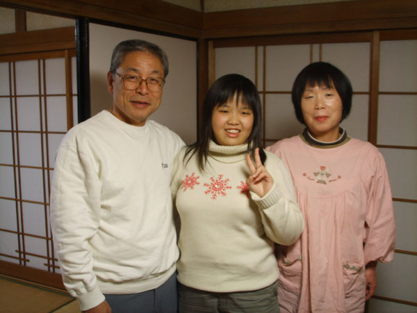 在日本我们有两次民宿,第一次是在山口县,那是一个四口之家,奶奶,爸爸,妈妈,和女儿瑞穗。瑞穗是一个很可爱的17岁小女生,我们因为都很喜欢维尼小熊,距离一下子拉进了。奶奶、爸爸、妈妈都非常热情,在吃过了传统的日式火锅后,爸爸妈妈驱车带我和瑞穗游览了许多山口县的名胜古迹。其中琉璃光寺是我白天就游玩过的,而夜晚的它不同于白天的沉静安定之美。在入门的石板小路的两旁摆满了白色的小烛台,柔和的黄色烛光摇曳,幽幽地延向深处,寺庙中传出轻柔的和歌,一切都变的飘渺、虚幻,比白天平添一丝神秘。我闭上眼细细的体会、而爸爸妈妈和瑞穗则在旁边耐心地等待我。随后我们又去逛了24小时营业的超市,还照了大头贴。他们对我是那般的热情,让我深深地感动。