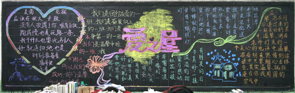 根据学校第十八届艺术节活动安排,学校团委会、艺术中心在高2006级、高2005级各班组织开展了以“温馨我班”为主题的黑板报比赛。各班精心编排,用美丽的图片和华丽的词藻,描绘出一幅幅班级建设的蓝图。这次活动,融思想性和知识性为一体,既培养了同学们搜集材料、动手操作的实践能力,又为班级建设和融合创造了良好的氛围。
