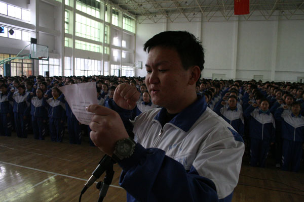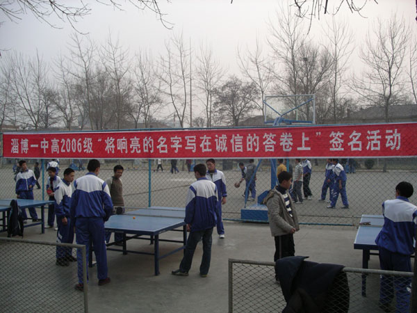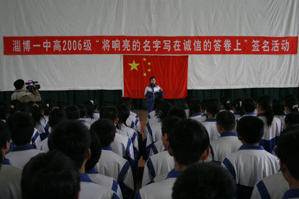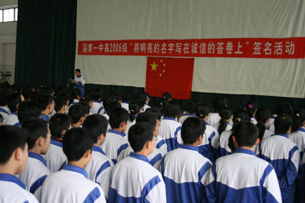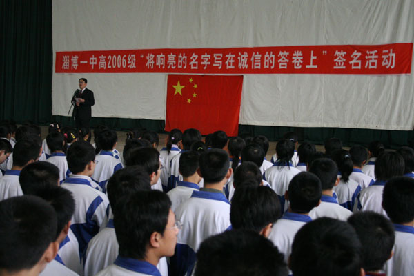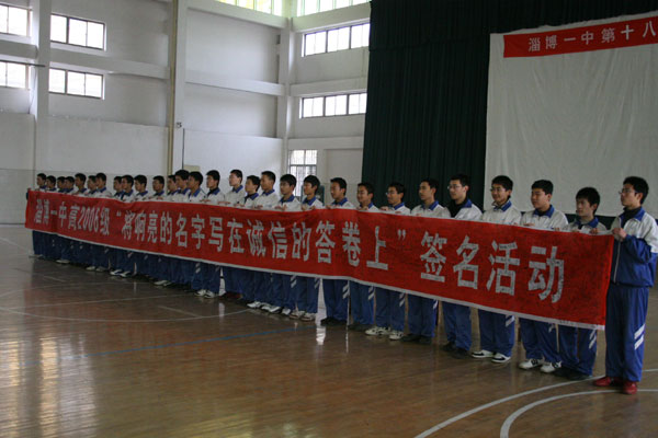 为加强学风考风建设,迎接第二次学习竞赛。12月24日,高2006级组织全体学生在学校体育馆举行了“将响亮的名字写在诚信的答卷上”签名仪式。