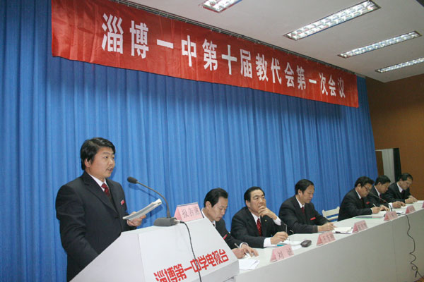 2006年12月23日下午,我校十届一次教代会在校本部学术报告厅隆重召开。市总工会民主管理部王福忠部长,市教育工会赵泮利主席,学校离休干部张华楼、刘学敏同志,陈贞凯校长,张业玉副校长在主席台就座,纪委书记刘诚主持会议。120名代表和5名特邀代表出席会议,27名同志应邀列席会议。会议的中心议题是:全面贯彻落实科学发展观,努力构建和谐校园,促进学校更快更好地发展。