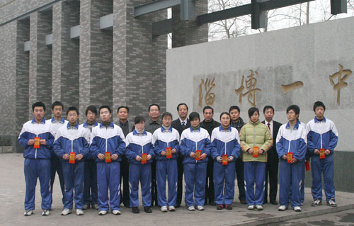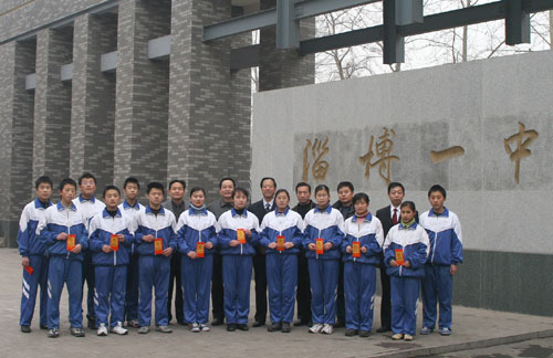 逯检察长首先介绍了“天祥奖学金”的由来,该奖学金是天威集团天祥公司为回报家乡而出资设立,用于奖励在博山四中及分校就读,并以优异成绩考取淄博一中的学生。他希望同学们好好学习,将来也能像赵经理一样回报家乡,回报社会。天祥公司赵经理对26名来自池上、李家的同学能在中考中取得优异成绩,能够考入淄博一中,能够获得“天祥奖学金”表示了热烈祝贺,勉励同学们珍惜在一中学习的大好机会,刻苦努力,争取创造优异的成绩为初中母校争光,为淄博一中争光。随后王煊同学代表获奖同学做了表态发言。逯检察长、赵经理、陈校长向26位同学颁发“天祥奖学金”。