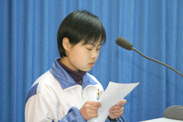 上届获奖学生、2006年淄博市中考状元我校学生柳青发言