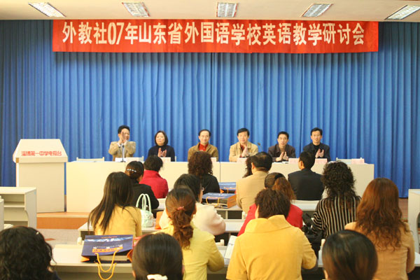 与会代表观摩了由淄博怡中外国语学校刘贵老师执教的英语公开课,听取了上海外国语大学韩天霖、上海外国语大学附属中学沈建平两位专家教师就英语教材使用方面问题所作的报告,并结合当前英语教学方面的热点问题进行了热烈的讨论交流。
