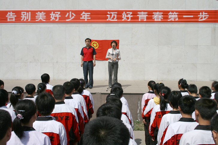 5月7日,外语学校隆重举行初二年级新团员入团宣誓活动。宣誓结束后学生家长代表讲话,衷心地希望同学们们迈好青春第一步,逐渐成长为祖国建设的栋梁之才。此项活动是外语学校“告别美好少年,迈好青春第一步”系列教育活动之一。活动内容包括:新团员入团宣誓仪式、青春期问卷调查、心理教育讲座等。