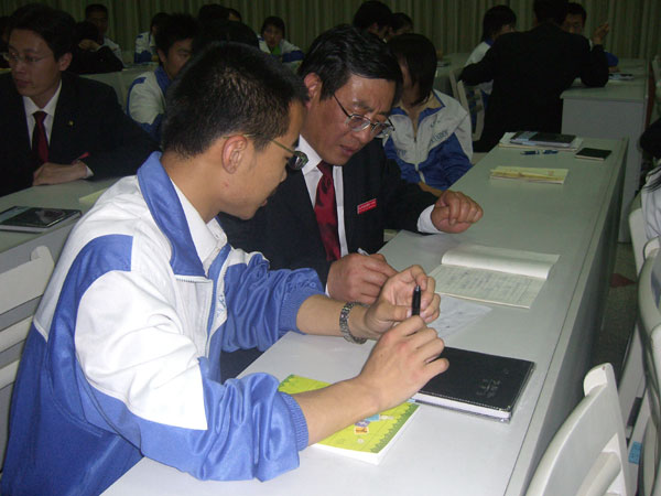 赵书记首先向同学们介绍“本学期党员结对子”活动的进展情况,阐述了举行这次恳谈会的意义。随后任春亮老师代表党员作了表态发言。他谈到:作为老师,作为一名党员老师,非常乐意帮助学生,和学生交流谈心,希望同学们相信老师,老师会主动的,尽其所能的帮助同学们解决思想上、学习上和生活上遇到的困难;在距离进入高三还不到两个月的时间,让我们携起手来,抓住机遇,迎接挑战,以优异的成绩升入高三。学生代表郑文凤同学在发言中说:感恩父母,感谢一中,感谢学校的关怀和老师的栽培,今后,将用努力的学习来回报学校。接着每位党员与结对子的学生进行了广泛的交流,并向学生赠送了写有赠言的笔记本。