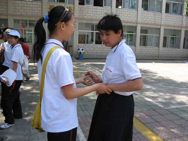 演出结束以后,我校的同学们参观了盲校,并与盲校的同学们愉快的交流,进一步了解了盲校同学们的学习和生活。大多数的同学平生第一次进触到了盲文,也看到了学生是如何写盲文。原以为写盲文和我们平常人写字没有什么区别,但是当看到他们课本上那密密麻麻用针插的小孔时,才真正感触到作为一个盲人学习的艰辛,如果没有坚强的毅力,是很难做到这一点的。对我们来说,一本普通的教科书,用盲文刻出来,却是又厚又重的一大本,为了求知,这里的同学们克服了重重困难,有的已经考入了大学继续深造。虽然只有短暂的半天时间,但友谊的种子已经在两校同学的心里生根发芽,珍爱生命、自强不息、关爱他人将成为全体师生自觉地行动。