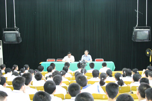 见面会上,学生代表向三位校友敬献了鲜花;陈贞凯校长代表学校向他们颁发了“功勋校友”荣誉杯;三位校友分别介绍了自己的成长历程,抒发了对母校教育和培养的感恩之情,表达了对母校未来发展的美好祝愿;学生代表发言,决心以“功勋校友”为榜样,勤奋学习,早日成材,为母校争光。