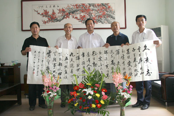 我校初6级老校友、全国优秀教师、全国中师书法教育研究会会员牛国泰将自己的书法作品送到母校,向全体老师祝贺教师节,并亲切看望了当年的班主任朱永坤老师。