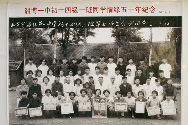 9月16日,我校学术报告厅内一群60多岁的老人聚在一起,像十几岁孩子一样,欢歌笑语,兴奋不已——他们就是我校初十四级一班的同学。1957年9月,带着对美好未来的憧憬,他们迈入淄博一中的大门,度过了三年初中生活,留下了难忘的回忆。五十年后的今天,带着对母校的眷恋与感恩、对老师的尊崇和回报、对同学的甜美回忆与牵挂,再次来到已发生翻天覆地变化的淄博一中,相聚在一起,围着心爱的老师,畅谈过去,畅谈今天,畅谈友情……