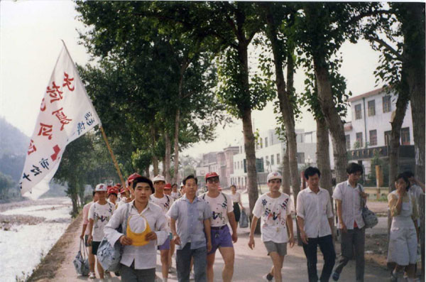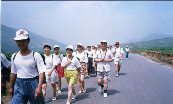 第六届“可爱的家乡”夏令营又赋予了纪念抗日战争胜利50周年的主题,队伍徒步跋涉五小时,宿营博山二中。开展联谊,参观军营,观看《山河吟》、雨中攀登马鞍山。