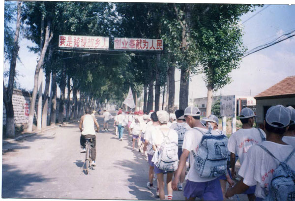 第五届“手拉手献爱心”夏令营,历时四天,40名营员徒步远行,到李家中学开展了手拉手活动