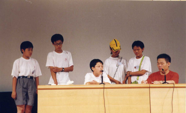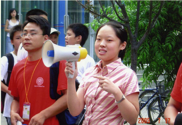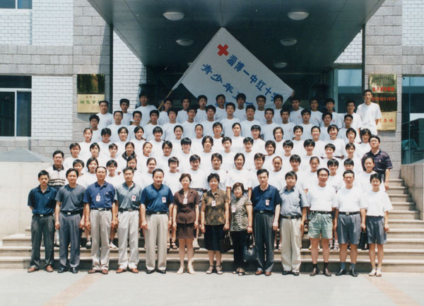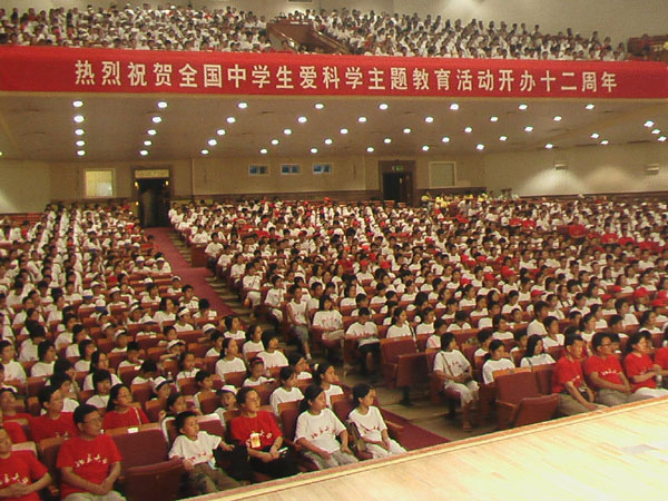 第十三届红十字夏令营恰逢北大第十届夏令营,北京大学副校长致词,反伪斗士何祚庥院士作报告,我校栾静同学代表全国2000余名营员在北大百年大讲堂发言