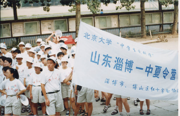 1990年7月,博山区红十字会暨淄博一中“可爱的淄博”夏令营开营,拉开了红十字活动在淄博一中校园全面展开的序幕,从此,红十字知识走进校园、走进课堂,红十字青少年夏令营从可爱的家乡到可爱的淄博,到可爱的山东,再走到首都北京,一路走来,一路欢歌,“人道、博爱、奉献”的红十字精神激励着淄博一中人的成长与发展……