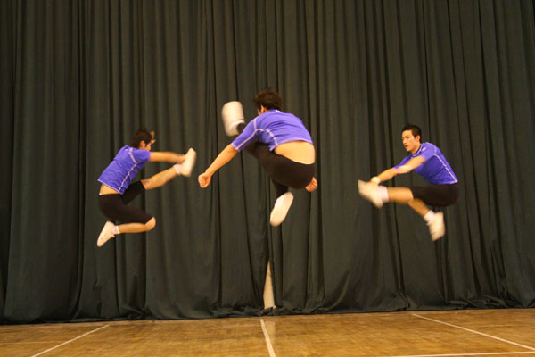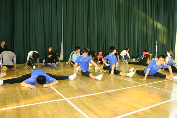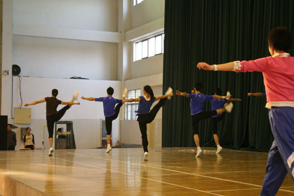 下午课外活动,6名国字号队员与我校健美操队一同训练并给我校学生做了精彩的展示。