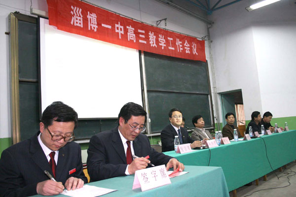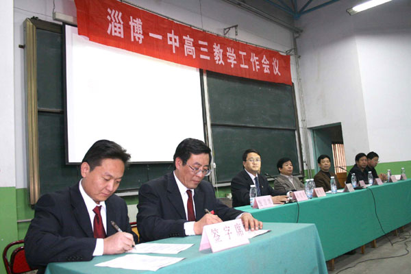 最后,苏明光主任发表讲话,他指出,在高三第一次摸底考试之后,进行阶段质量分析、整改过程的关键时刻召开这样一次关键性会议,必将促进全体高三干部、老师责任感紧迫感,必将促进全体干部教师抓高三工作落实,特别是抓整改措施落实。他强调,今年暑期全市教育系统领导干部理论读书会暨高中教学工作会议确立了“转变质量提升方式、加快教育创新”的主题,把管理创新、把课堂教学方式创新摆在了重要的议事日程。我们淄博一中07年之所以这样辉煌,其中重要的一条就是坚持了教育创新。转变质量方式从哪里寻找突破口,我觉得当下有三个方面,最核心的是课堂教学改革,包括高三,其次是抓好教学质量阶段性评议机制的落实,第三点就是要提高认识,切实提升应届生巩固率。他希望并相信,在学校党委的正确领导下,同心同德、惟旗必夺的一中人必将再一次刷新普通高中学校的高考记录,为全市教育事业的发展做出更大更新的贡献。