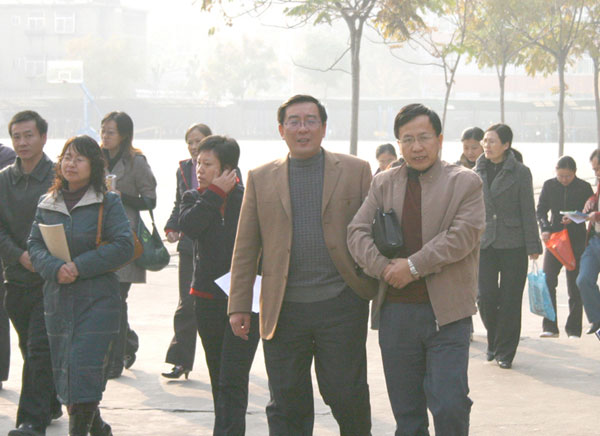 校长陈贞凯简要介绍了学校近年来的发展情况,校长助理李诚详细汇报了我校“立足课改,向教育教学科研要质量”的成功做法。考察人员深入课堂,对各年级各学科新型教学模式的实施进行了观摩,课后与执教教师座谈交流。