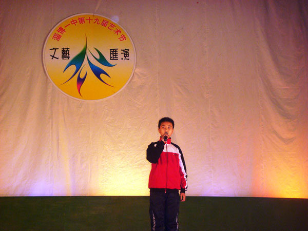 淄博盲校是我校的合作伙伴,多年来,两校发挥教育资源互补优势,开展了多项富有教育意义的活动,为视障儿童提供了接触社会的机会,也让我校学生从残疾学生身上获得了珍爱生命、自强不息的精神。这次,我们邀请了盲校70余名师生参加晚会,两位盲童分别上台演出了笛子独奏《山丹丹花开红艳艳》和歌曲《菊花台》,演员特殊的困难和娴熟的演技形成的反差,深深打动了在场的观众。