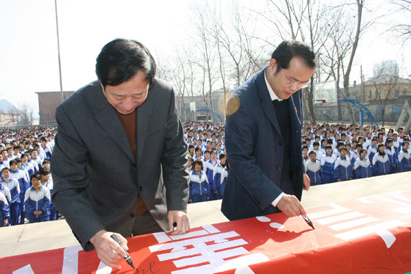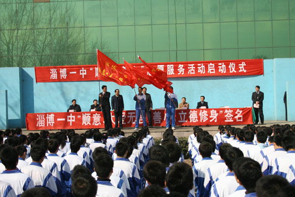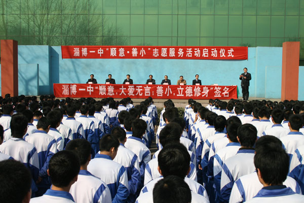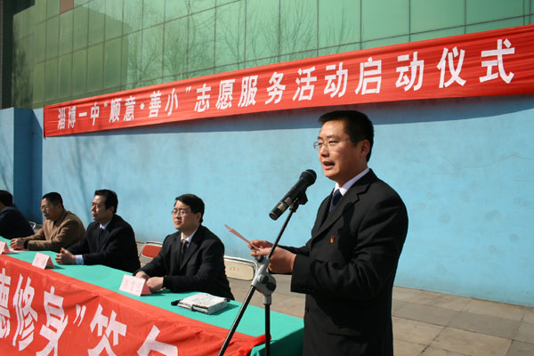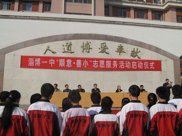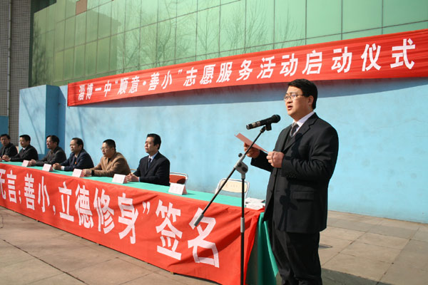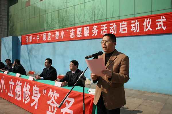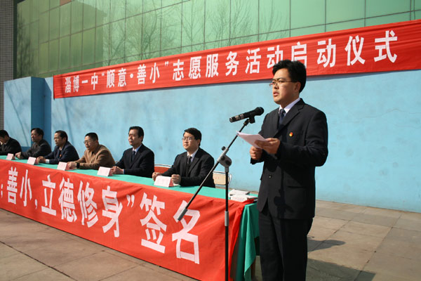 党委书记司志宏在讲话中指出,今年3月5日是第八个中国青少年志愿者服务日,也是毛泽东同志等一辈无产阶级革命家号召“向雷锋同志学习”四十五周年纪念日。作为2007年度感动淄博人物,“顺意·善小”得到了淄博全市人民的认可,已经成为体现爱心的淄博公益品牌。今天,我们全校师生隆重集会,召开“顺意·善小”志愿者服务活动期仪式,就是要在全校师生中大力开展向“顺意·善小”学习活动,推进素质教育,促进全体学生的全面发展。他代表学校提出了希望和要求,要充分认识开展“顺意·善小”志愿者服务活动的意义,要把“顺意”、“善小”志愿者服务活动与大力推进素质教育结合起来,要积极参与学校组织的系列志愿服务活动,要建立长效服务机制。