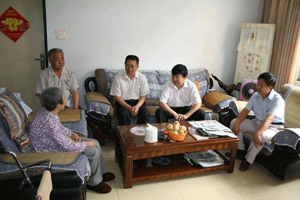 7月4日,受市总工会委托,市教育局党委委员、市教育工会主席赵泮利在市教育工会副主席郑伟陪同下来到我校,亲切看望全国劳模、退休教师刘爱华,并将2000元慰问金送到刘爱华老师手中。学校领导司志宏、张业玉、孙希刚陪同活动。