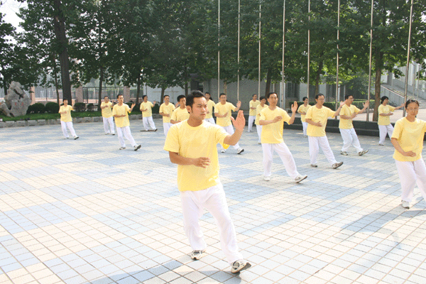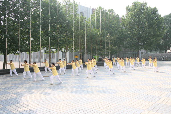 7月17日上午,由淄博市教育工会组织的全市教育系统教职工太极拳表演比赛活动进行到淄博一中,代表队员以统一的服装,严整的队形,规范的动作,尤其是认真专著的神态,充分展示了太极拳活动的魅力。参加此次太极拳表演赛的教职工,有的是太极拳基础零起点,有的是多年坚持训练的行家,从刚参加工作的年轻教师,到已是满头银发的退休教师,他们有着共同的态度和想法,就是积极参加演练,以实际行动支持北京奥运,以实际行动倡导健康向上的生活方式,以健康的体魄为教育事业多作贡献。他们表示,此次比赛活动是一个有力的启动,赛后他们将坚持日常演练,不断提高水平,宽大队伍阵容,使学练太极拳真正成为一项广泛的群众体育活动,在随后举行的学校体育节上再展风采。