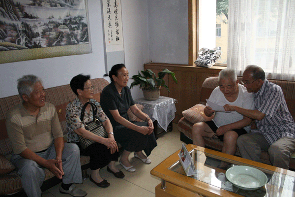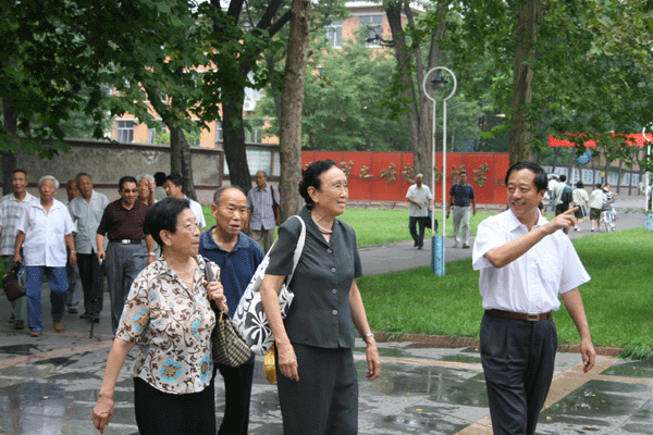 老校友回母校 日期:2008-08-30 来源:本站 X 8月28日下午,清华大学崔京浩教授、北京邮电大学李玲教授等毕业50余年的部分老校友,在上午参加了赵蔚芝老先生九十寿辰庆贺活动之后,满怀着感恩之情,重归母校。他们亲切看望了年事已高的刘鼎文老师和朱永坤老师,共话当年在一中求学的师生情意,表达了对老师的感激与祝福。 随后,陈贞凯校长、张业玉副校长、孙希刚主席陪同老校友参观了校园,老校友对母校的巨大变迁感慨万千,对母校未来的发展给予了美好祝愿。 (学校办公室)
