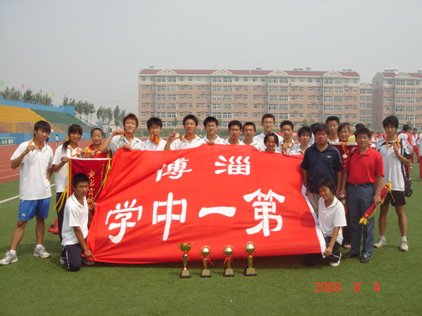 淄博市中学生运动会每三年举行一届,是我市水平最高、参赛人数最多的中学生体育赛事。淄博市第十三届中学生运动会于7月13日至8月5日举行,本次比赛共设田径、游泳、篮球、排球、足球、乒乓球、健美操、腰旗橄榄球八个大项的比赛,我校只参加了田径、篮球、足球、乒乓球共四个项目的比赛,各代表队均取得优异成绩。乒乓球队取得男子团体第一名,女子团体第一名,,并取得“体育道德风尚奖”;足球队获得第四名的好成绩,同时获得“体育道德风尚奖”;篮球队获得第五名的好成绩;田径队获得男子团体总分第二名,女子团体总分第六名,综合团体总分第四名的优异成绩,列市属学校第一名。我校代表团在参赛项目较少的情况下,经过运动员的顽强拼搏,最终获得了第二名的好成绩,并获得“体育道德风尚代表团”称号;我校还获得淄博市第十三届中学生运动会“突出贡献奖”,充分展现了我们淄博一中素质教育的成果。