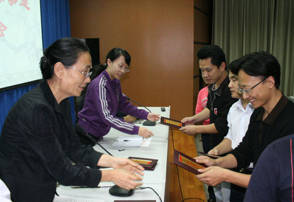 首先,大会对优秀教工团支部、优秀教工团支部书记、优秀教工团干部进行了表彰。学校教育顾问贾爱华老师、党委委员张萍老师、团委书记梁慎超老师为获奖的集体和个人颁奖。高2005级教工团支部、高2007级教工团支部获得优秀教工团支部称号,王凡友、张建武被表彰为优秀教工团支部书记,尹新艳等八人被表彰为优秀教工团干部。学校希望受表彰的集体和个人珍惜荣誉,再接再厉,以一流的业绩向学校85周年校庆献礼。
