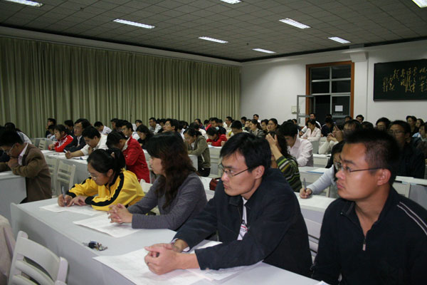 2008年9月24日晚7点20,“忠诚教育,爱岗奉献——贾爱华老师报告会”在科技报告厅隆重举行,报告会由团委副书记曹勇老师主持,共有114名老师与会。