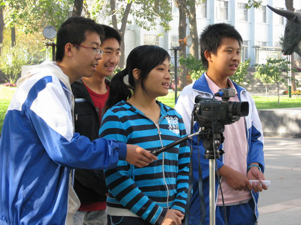新学期,经过报名、选拔,校园电视台迎来了一批新成员——来自2008级各班的23位同学。通过几次培训之后,同学们终于迫不及待地走上了新的岗位,去观注发生在校园的一切,去记录发生在学生身边的一切,在校园电视台这方舞台上尽情施展自己的才华,释放自己的个性。